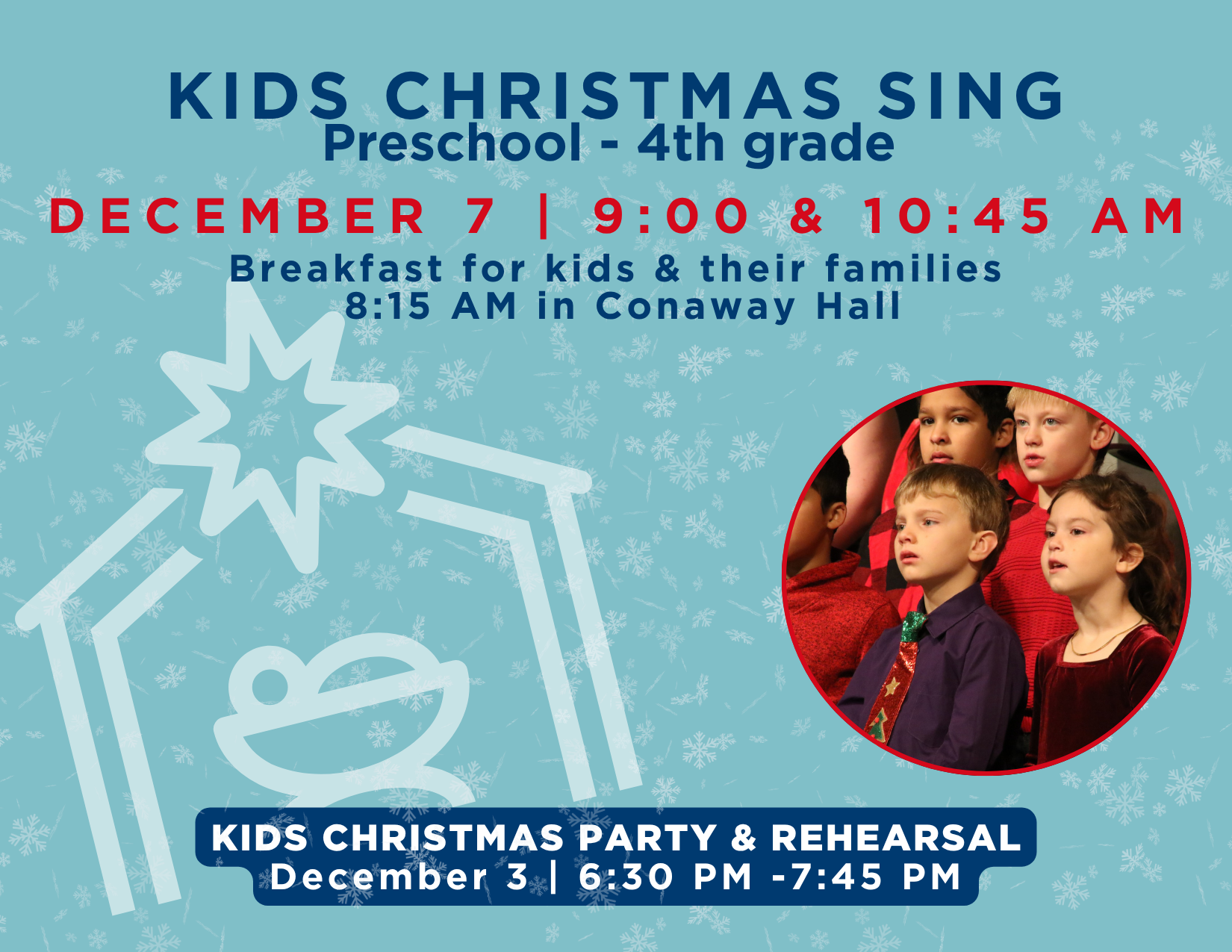 Parents, all kids in preschool - grade 4 will be singing for the congregation in both services on December 7. We encourage you to invite friends and family to attend — invites will be available November 16.